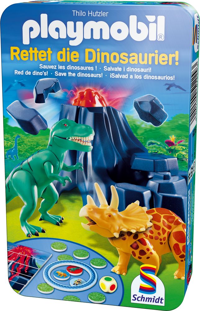 Hilfe! Der Vulkan steht kurz vor dem Ausbruch. Jetzt heißt es, schnell alle Dinos in Sicherheit zu bringen. Der Würfel gibt an, welche Dinos mit dem Fangnetz gerettet werden können. Doch Vorsicht, erscheint das Vulkansymbol auf dem Würfel, fängt die Lava an zu brodeln. Wer am Ende des Spiels die meisten Dinos retten konnte, gewinnt. In der Metalldose!