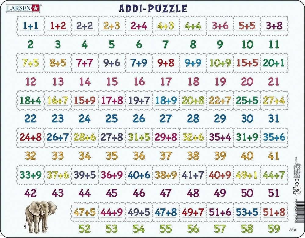 Das Addi-Puzzle Additionspuzzle verbindet spielerisches Vergnügen mit gezielter Förderung der Rechenkompetenz. Es richtet sich an Kinder, die erste Erfahrungen mit dem Addieren sammeln oder ihre Fähigkeiten festigen möchten. Die einzelnen Puzzleteile sind so gestaltet, dass nur die jeweils passende Lösung mit der zugehörigen Aufgabe kombiniert werden kann. So entsteht ein motivierender Lernprozess, bei dem Erfolgserlebnisse im Vordergrund stehen.