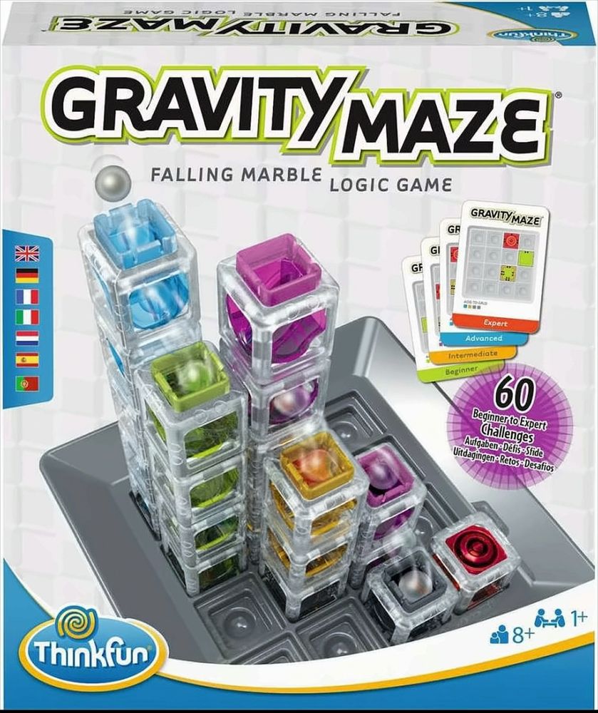 Wie bei den meisten ThinkFun Geduld- und Logikspielen, stellen die 60 Aufgabenkarten in vier Schwierigkeitsstufen jeden Spieler, vom Anfänger bis zum Experten, auf die Probe. Somit ist Gravity Maze das ideale Spiel für einen Spieler und bekämpft jede Langeweile