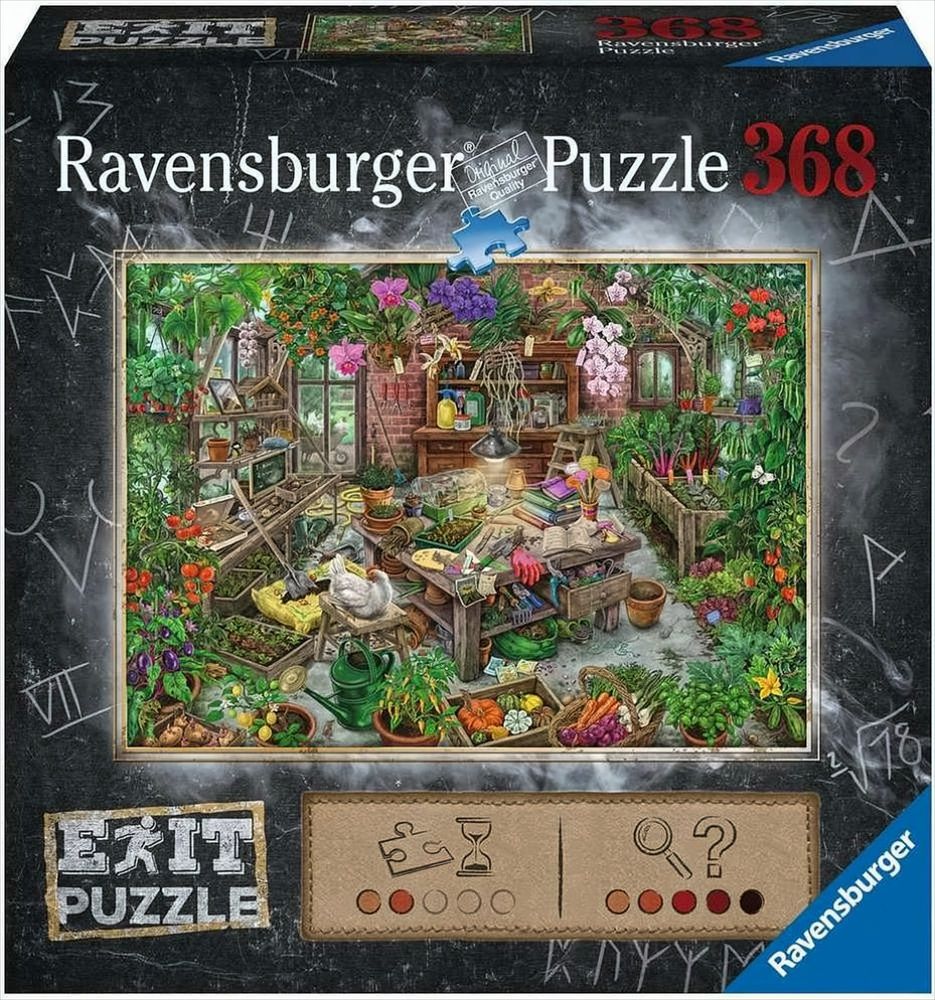 Beim Ravensburger EXIT Puzzle "Im Gewächshaus" mit 368 Teilen passieren mysteriöse Dinge. Kannst du der Gärtnerin helfen, das Gemüse zu retten?