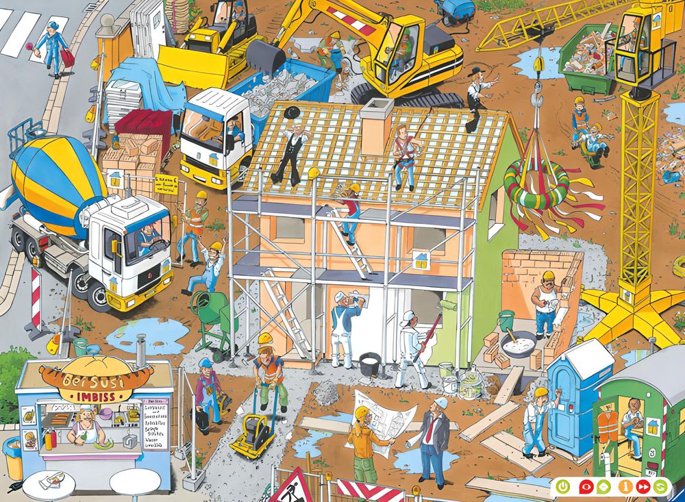 Der tipoti® Stift erweckt das Geschehen zum Leben: Der Spieler tippt bei Entdecken auf Bauarbeiter und Gerätschaften, um Wissenswertes über sie zu erfahren. Im Spiel darf er dann sogar selbst mit anpacken. Er unterstützt die Arbeiter bei ihren Aufgaben und erlebt seinen ersten Tag auf der Baustelle.