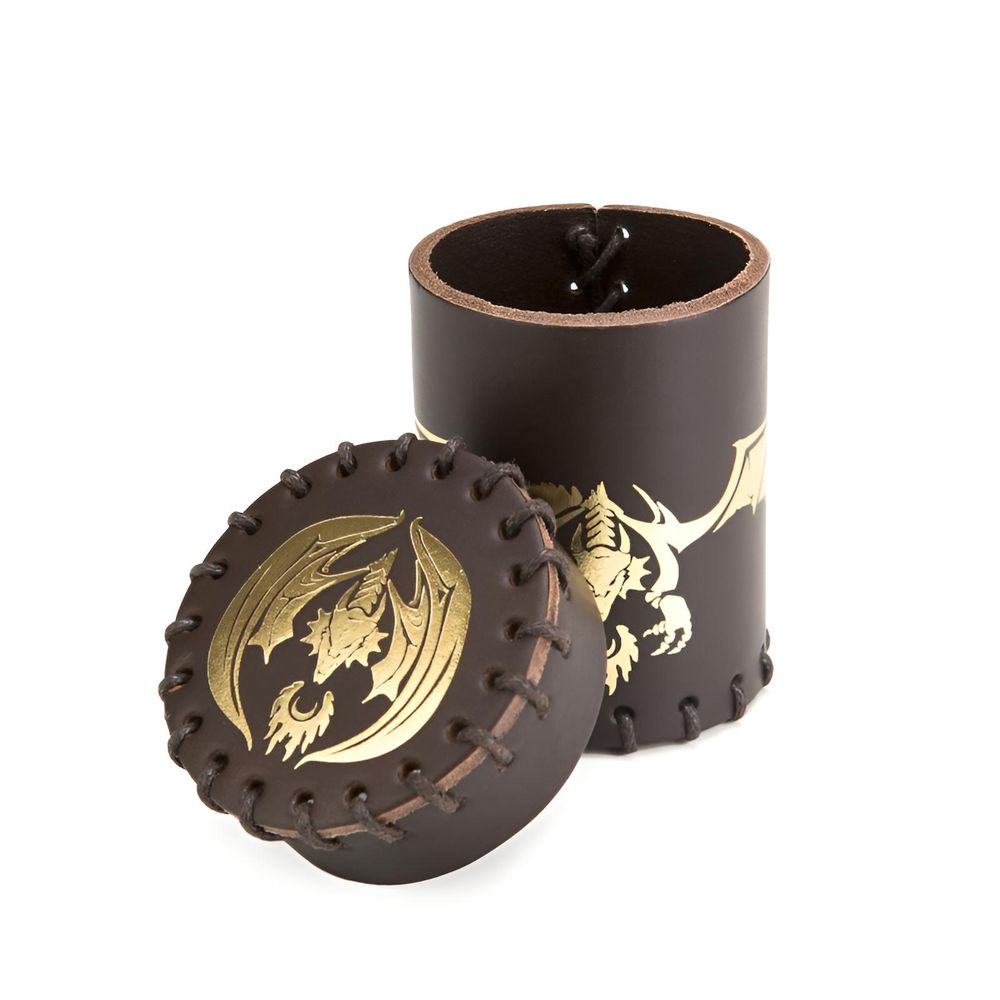 Flying Dragon Leather Dice Cup Brown & Golden