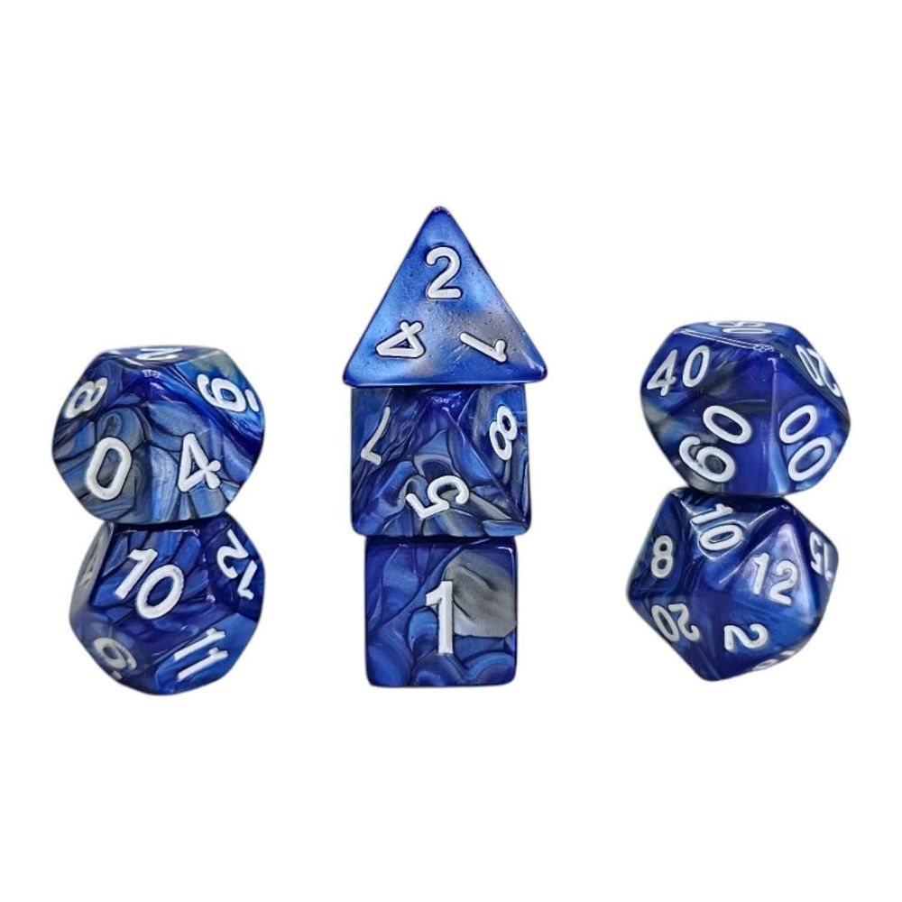 7-teiliges polyedrisches RPG-Würfelset bestehend aus den spieltypischen und relevanten RPG-Würfeln: D4, D6, D8, D10 (0-9), D10 (00-90), D12 und D20.