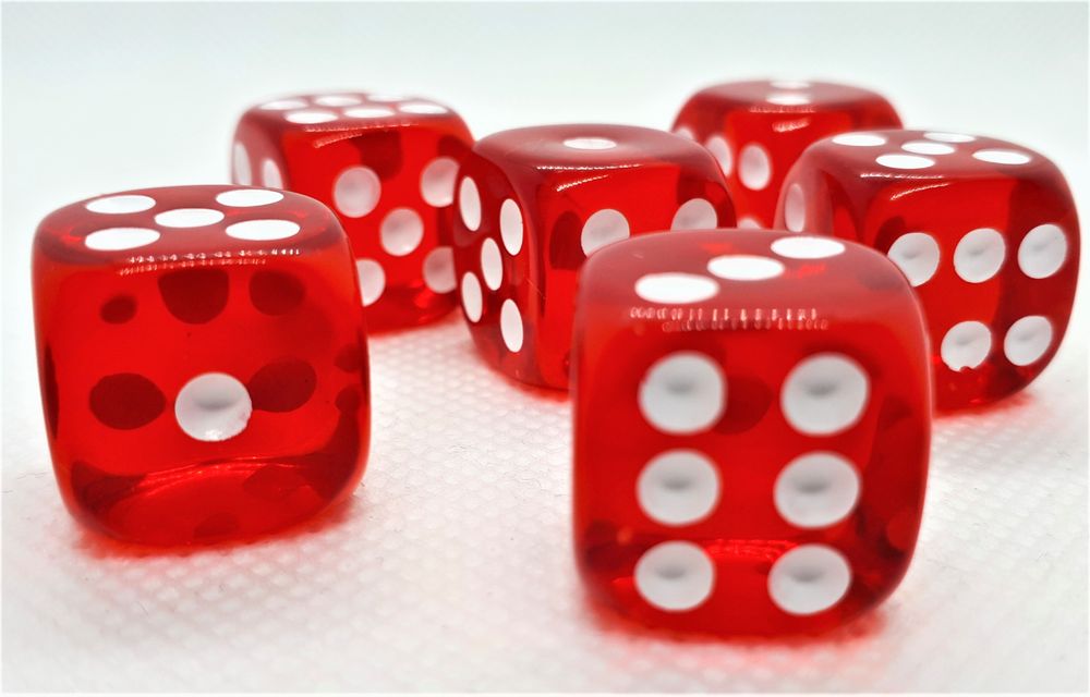 Klassische sechsseitige Augenwürfel für Spiele wie Yahtzee, Knobeln, Kniffeln, aber auch für viele Rollen- und Brettspiele.