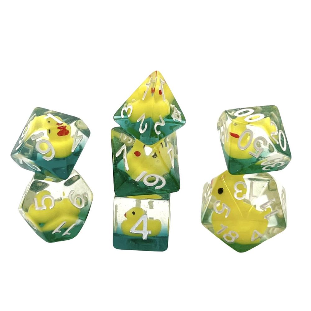 7-teiliges polyedrisches RPG-Würfelset bestehend aus den spieltypischen und relevanten RPG-Würfeln: D4, D6, D8, D10 (0-9), D10 (00-90), D12 und D20.