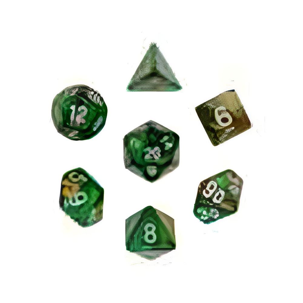 7-teiliges polyedrisches RPG-Würfelset bestehend aus den spieltypischen und relevanten RPG-Würfeln: D4, D6, D8, D10 (0-9), D10 (00-90), D12 und D20.