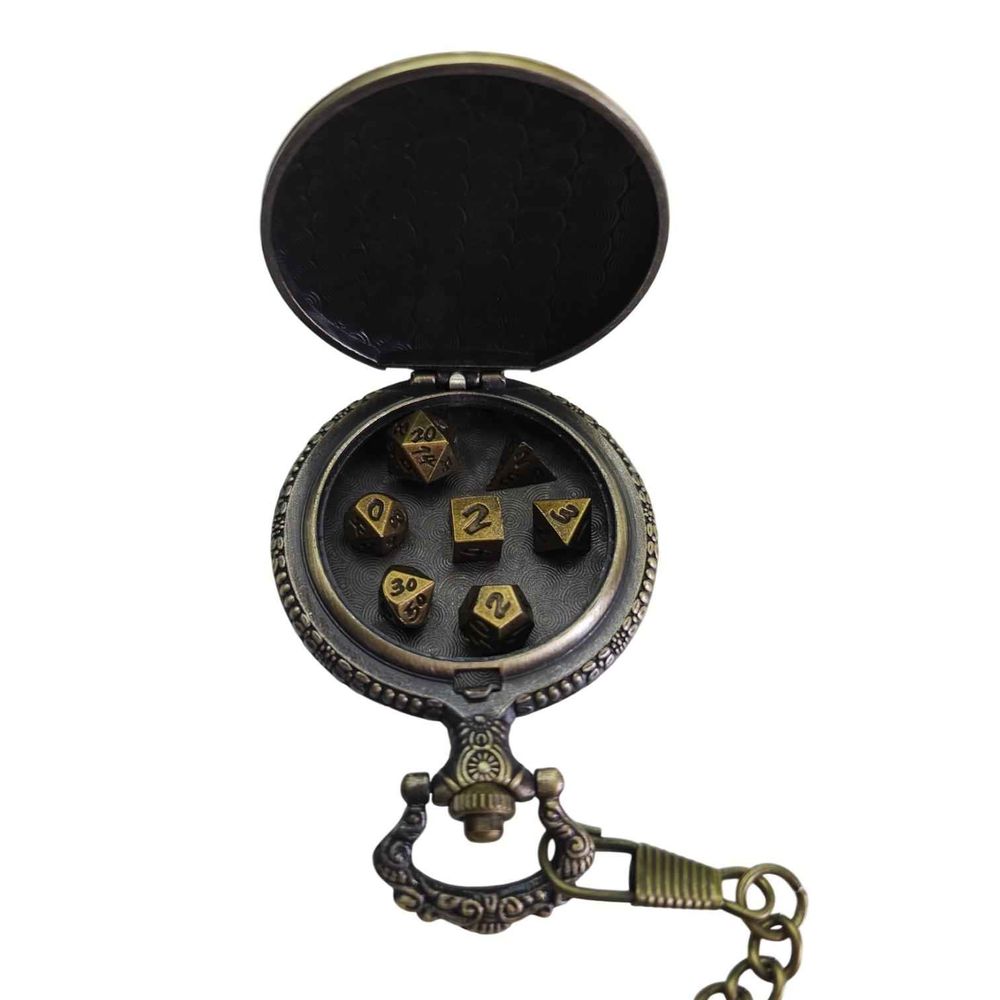 Durch das robuste Metallmaterial liegen die Würfel angenehm schwer in der Hand und sorgen trotz ihrer kompakten Größe für ein präzises, klares Rollverhalten. Das Amulett bietet eine stilvolle Möglichkeit, das Set immer bei sich zu tragen – ob als Blickfang am Hals oder als dezentes Accessoire an Tasche oder Schlüsselbund.