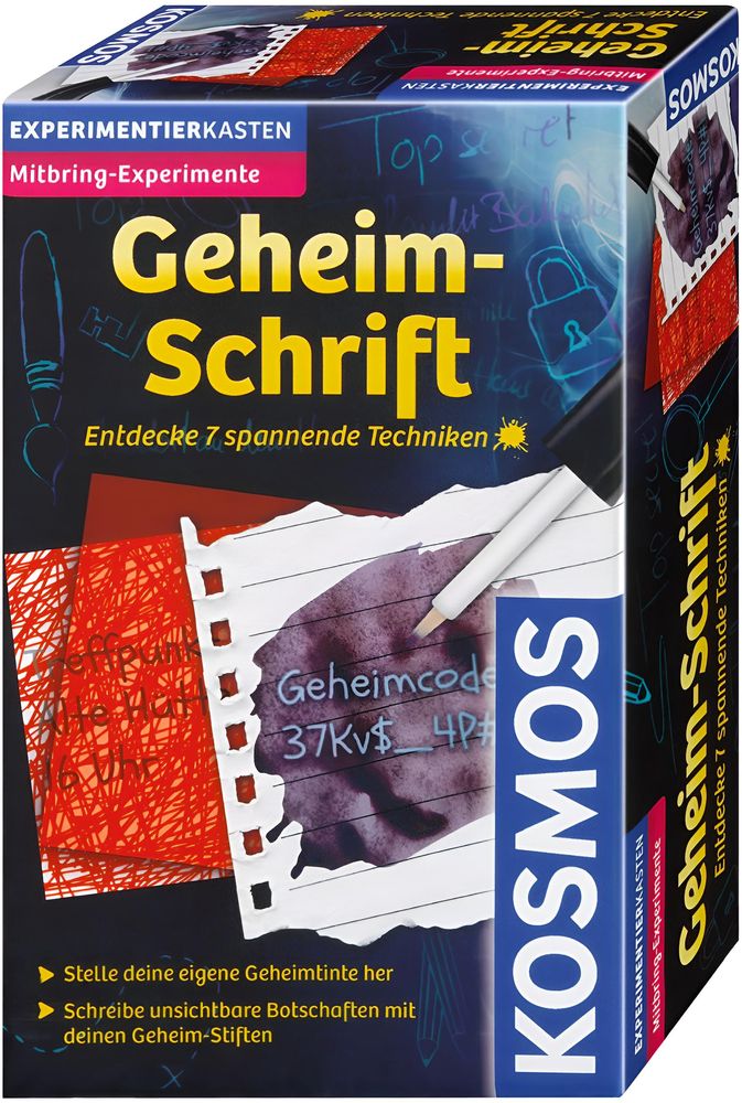Wer jemandem eine geheime Botschaft schicken und sichergehen möchte, dass nur der Empfänger die Botschaft lesen kann, benötigt geheime Schriften. Mit diesem Geheimschrift-Set kann eigene Geheimtinte hergestellt und auf viele spannende Arten Nachrichten versteckt und verschlüsselt werden. So können Geheimnisse ausgetauscht werden, die niemand anderes als der Empfänger lesen kann.