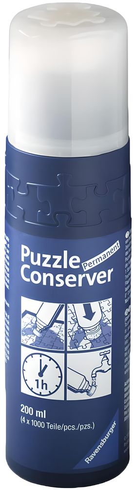 Der Ravensburger Puzzle-Conserver ist ein Spezialkleber für Puzzles: Mit dem Puzzle-Conserver kann das Lieblings-Puzzle schnell und einfach fixiert werden, um es anschließend als Deko-Element an der Wand aufzuhängen oder formstabil aufzubewahren
