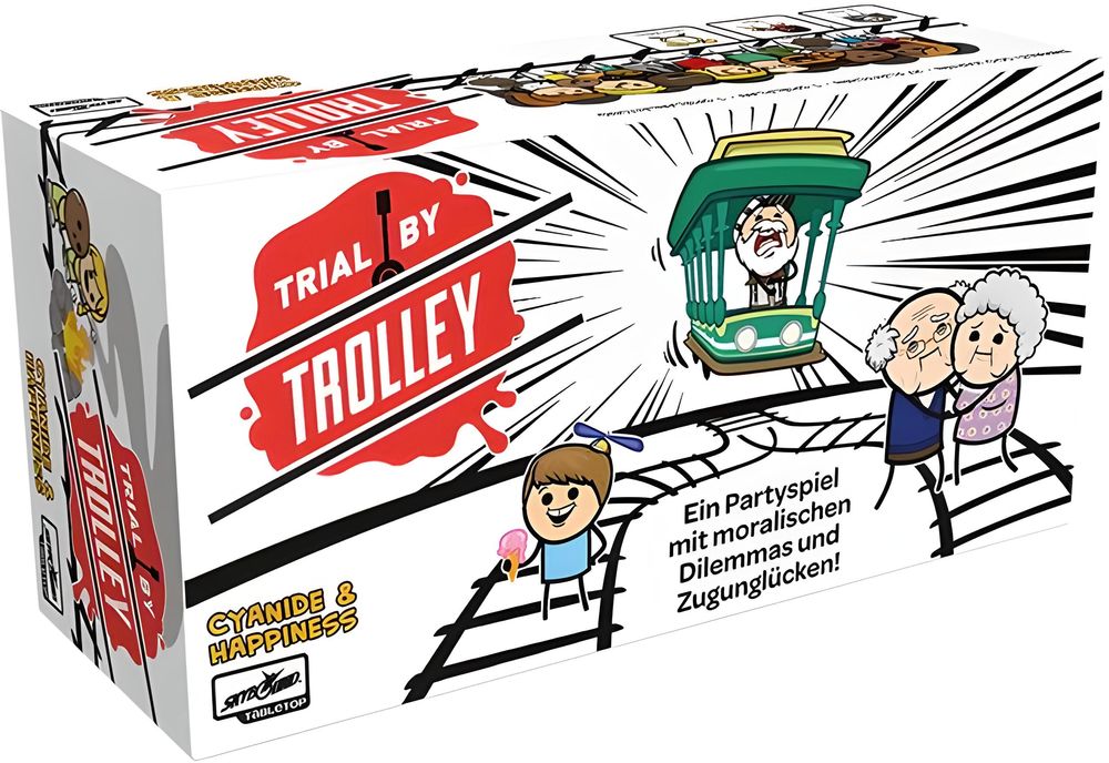 Trial by Trolley ist ein Spiel, in dem ein bekanntes Gedankenexperiment am Spieltisch für viele Lacher sorgt: Welches Gleis mit welchen Leuten darauf würdet ihr überfahren, wenn ihr müsstet? Auch wenn die Frage makaber ist, gelingt es diesem Partyspiel mit vielen Karten, Humor und Nachdenklichkeit perfekt zu verbinden. Es geht darum, eine Entscheidung zu treffen, während alle anderen Spieler wie wild auf den Entscheider einreden und versuchen, ihn zu beeinflussen, das Gleis des jeweils anderen Teams zu überrollen.