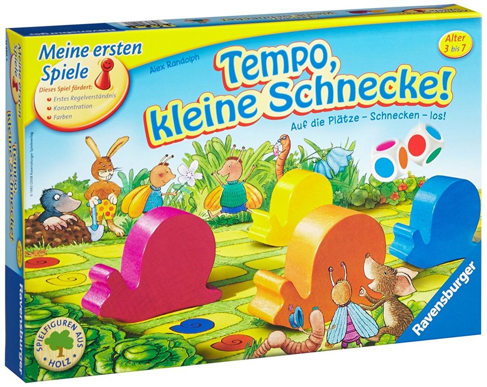 Mit Tempo, kleine Schnecke wird das Farbenlernen zu einem riesigen Spaß! Das Brettspiel für die Kleinsten ab 3 Jahren eignet sich zudem auch sehr gut, um erste Spielregeln zu erlernen.