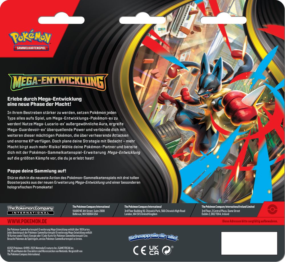 In ihrem Bestreben stärker zu werden, setzen Pokémon jeden Typs alles aufs Spiel, um Mega-Entwicklungs-Pokémon zu werden! Nutze Mega-Lucario-ex' außergewöhnliche Aura, ergreife Mega-Guardevoir-ex' überquellende Power und verbünde dich mit weiteren dieser mächtigen Pokémon, die über verheerende Attacken und enorme KP verfügen.