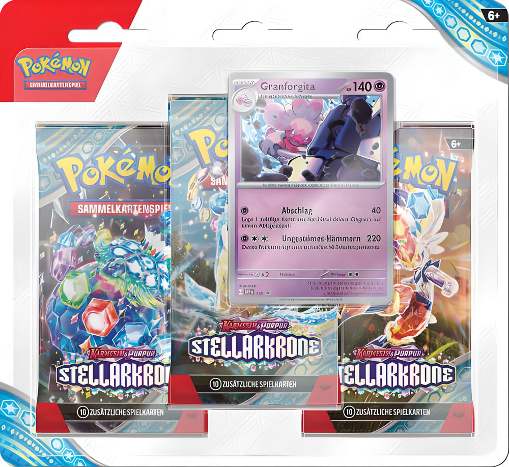Pokémon 3er-Pack-Blister Karmesin & Purpur – Stellarkrone: Granforgita