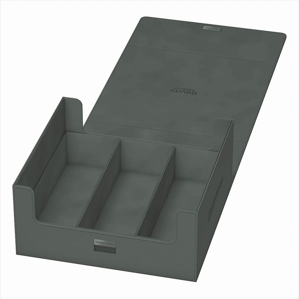 Das neueste Mitglied unserer Hive-Familie: das Treasurehive 90+! Speziell für die Aufbewahrung von bis zu 90 Ultimate Guard Magnetic Card Cases geeignet (mit 35pt). Alternativ kann diese elegante Schatzkiste auch über 370+ Toploader, 990 Karten (double-sleeved) und eine Vielzahl von Ultimate Guard-Deck Cases aufnehmen, um deine wertvollen Karten zu schützen. Schütze deine Schätze besser als jeder Pirat! Features: - Designed für bis zu 90 Ultimate Guard Magnetic Card Cases (35pt) oder mehr als 370 Toploader - Ideal zur Aufbewahrung einer Vielzahl von Ultimate Guard-Produkten - Geeignet für den Transport oder die Aufbewahrung von 990 double-sleeved Karten der Standardgröße in Ultimate Guard Sleeves* - Widerstandsfähiges Xenoskin-Material - Starker Magnetverschluss mit zusätzlichem ZnapClaw Verschlussmechanismus Abmessungen: ca. 252 x 252 x 125 mm
