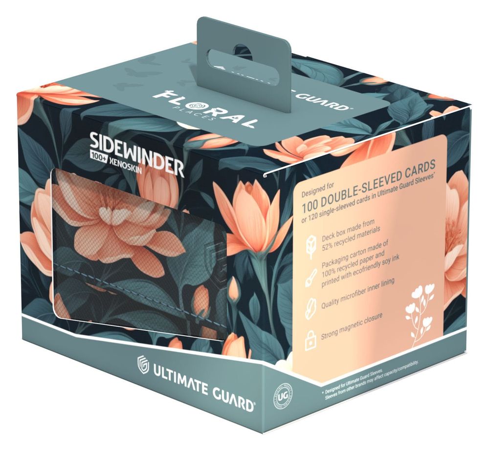 Der Sidewinder 100+ Xenoskin ist eine premium Deck-Box für Sammelkartenspiele und bietet herausragenden Kartenschutz dank des widerstandsfähigen Xenoskin-Materials, der hochwertigen Mikrofaser-Innenseite und des starken Magnetverschlusses. Gleichzeitig bietet der Sidewinder einfachen und bequemen Zugang zu den Karten im Inneren. Designt für 100 doppelt gesleevte Karten in Ultimate Guard-Hüllen, ist unser "Floral Places"-Sidewinder die perfekte Deck-Box für TCGs wie Magic: The Gathering, Pokémon, Lorcana, One Piece, Yu-Gi-Oh! und Flesh and Blood..