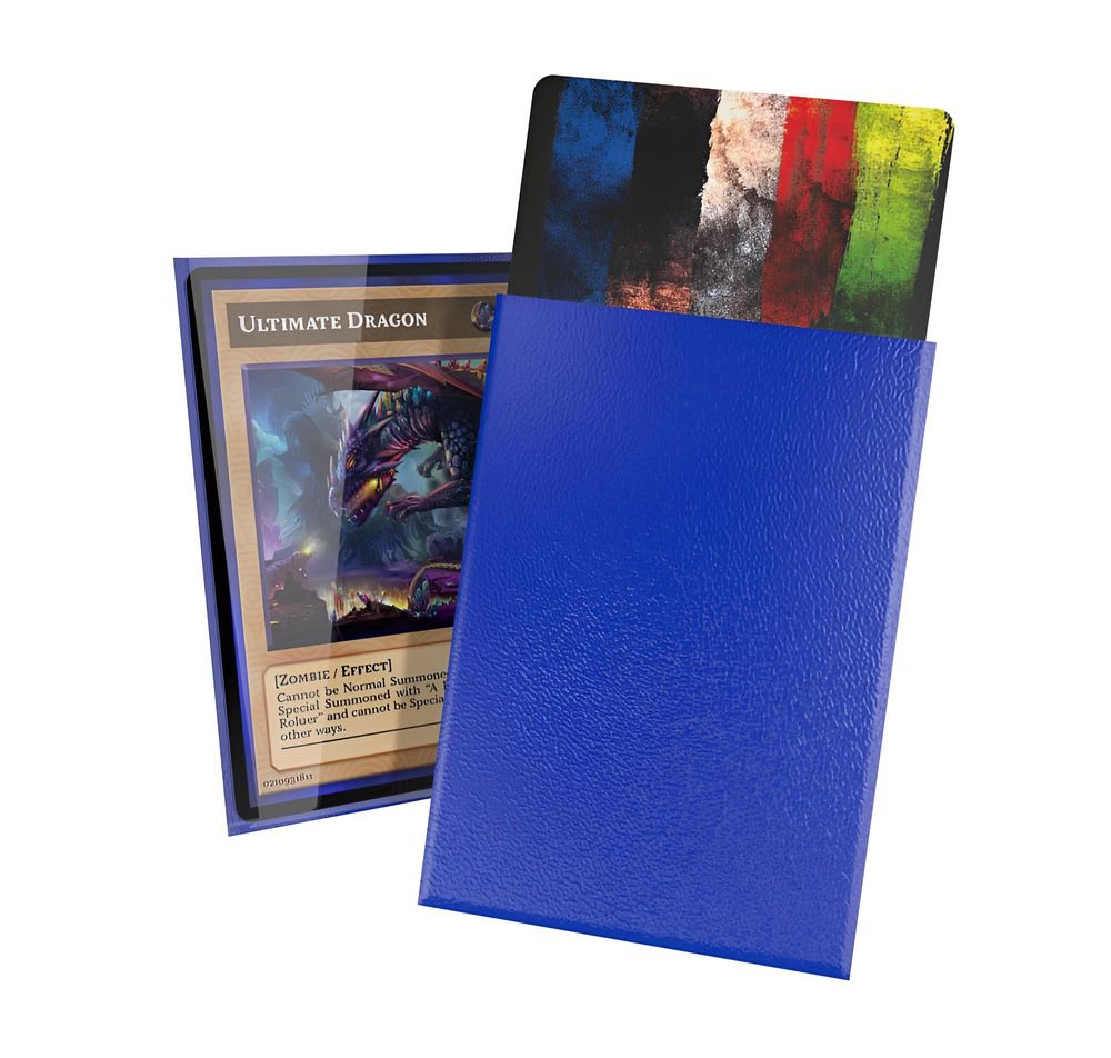 Die blaue Rückseite verleiht dem Deck eine klare, einheitliche Optik und reduziert Transparenz, sodass Kartenrückseiten und kleinere Gebrauchsspuren diskret bleiben. Die Innenseite ist so gestaltet, dass Karten leicht eingeschoben werden können und dennoch fest sitzen. Ideal für Turnierspielende und alle, die ihre Karten langfristig in gutem Zustand bewahren möchten.