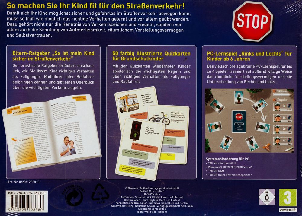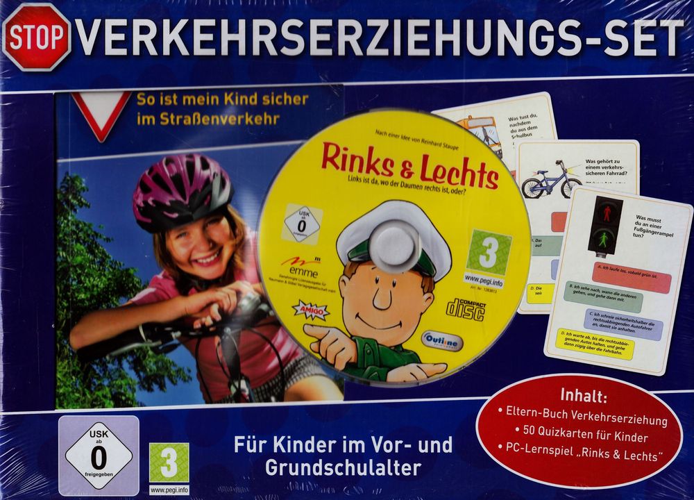 Verkehrserziehung für Kinder Rinks und Lechts - So machen Sie Ihr Kind fit für den Straßenverkehr! Damit sich Ihr Kind möglichst sicher und gefahrlos im Straßenverkehr bewegen kann, muss so früh wie möglich das richtige Verhalten gelernt und vor allem geübt werden. Dazu gehört nicht nur die Kenntnis von Verkehrszeichen und -regeln, sondern vor allem auch die Schulung von Aufmerksamkeit, räumlichem Vorstellungsvermögen und Selbstvertrauen. Für Kinder im Vor- und Grundschulalter. Inhalt: Elternbuch Verkehrserziehung, 50 Quizkarten für Kinder, PC-Lernspiel "Rinks & Lechts".