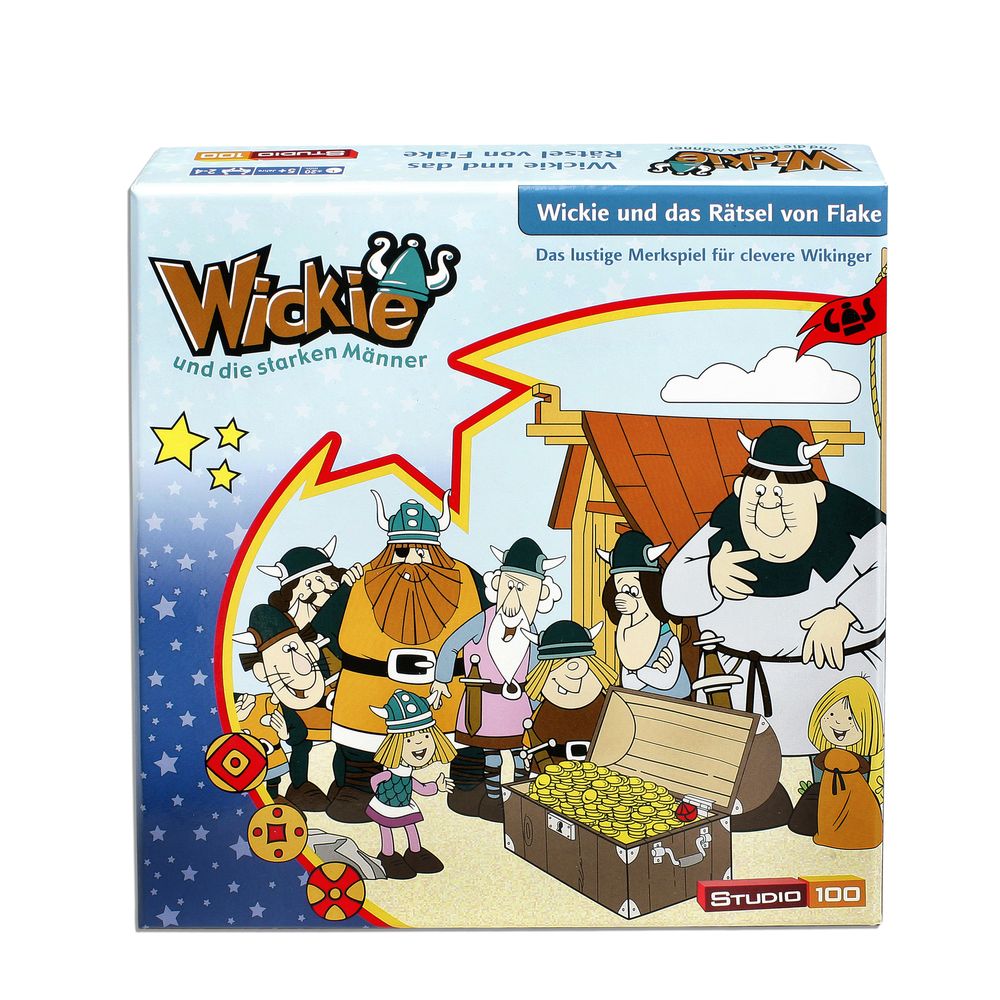 In Flake herrscht großer Aufruhr: Der Schreckliche Sven und seine Männer stehen vor dem kleinen Wikingerdorf und drohen mit einem Angriff. Nichts scheint die hinterhältigen Friesen aufhalten zu können. Doch da hat Wickie eine Idee: Er fordert Sven zu einem spielerischen Rätsel heraus. Gelingt es Sven, vor Wickie das Rätsel von Flake zu lösen, darf er Flake plündern. Gewinnt Wickie, belibt Flake verschont und die Friesen müssen den Wikingern eine Truhe Gold schenken. Wer wird das Rätsel von Flake als Erster lösen? Jeder Spieler versucht, sich die Motive der verdeckten Wikinger-Plättchen zu merken, die in der Tischmitte ausliegen. Wer passende Plättchen aufdeckt, darf sie in sein Drachenboot legen. Der Spieler, der zuerst die Schiffsmannschaft komplett hat, gewinnt.Features: Spielerzahl: 2 bis 4Spieldauer: ca. 20 MinSpielmotivation: Spaß, Beschäftigung