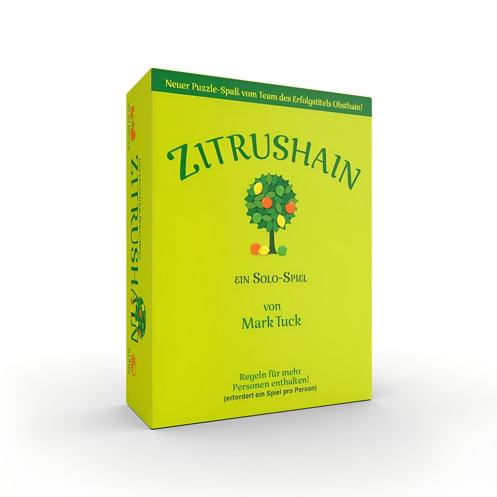 Zitrushain ist der nächste Spaß nach Obsthain, dem preisgekrönten Solo-Hit. In diesem flotten Solo-Lege-Puzzle willst du durch kluges Anlegen deiner Handkarten möglichst viele Früchte ernten. Platziere deine Karten dafür so, dass die darauf abgebildeten Obstbäume andere Bäume gleicher Sorte in deinem Zitrushain überdecken. Je geschickter du die Bäume überdeckst, desto mehr Früchte – und somit Punkte – wirst du ernten.