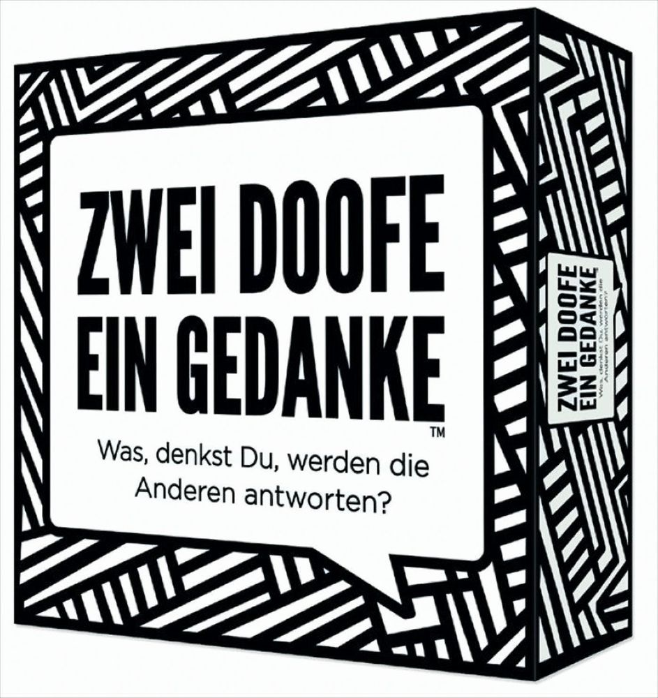 Ein Tier im Zoo? Ein Song von ABBA? Ein TV-Moderator? Eine Biermarke? Ein Körperteil? Wie, denkst Du, wird die Antwort der Anderen ausfallen? Zwei Doofe ein Gedanke ist ein mitreißendes Spiel mit hohem Funfaktor. Dabei muss jeder Spieler versuchen dieselbe Antwort abzugeben wie die anderen Spieler. Je mehr Spieler so wie Du geantwortet haben, desto mehr Punkte erhältst Du.